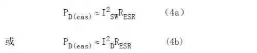 輸入輸出電容是功率開關或輸出整流器產生的高頻電流的唯一來歷(或貯存處),所以通過調查這些電流波形可以合理地承認流過這些電容ESR的電流。這個電流不可避免地在電容內產生熱量。設計濾波電容的首要任務便是確保電容內部發熱足夠低,以確保產品的壽數。式(4)給出了電容的ESR所產生的功率損耗的計算式。